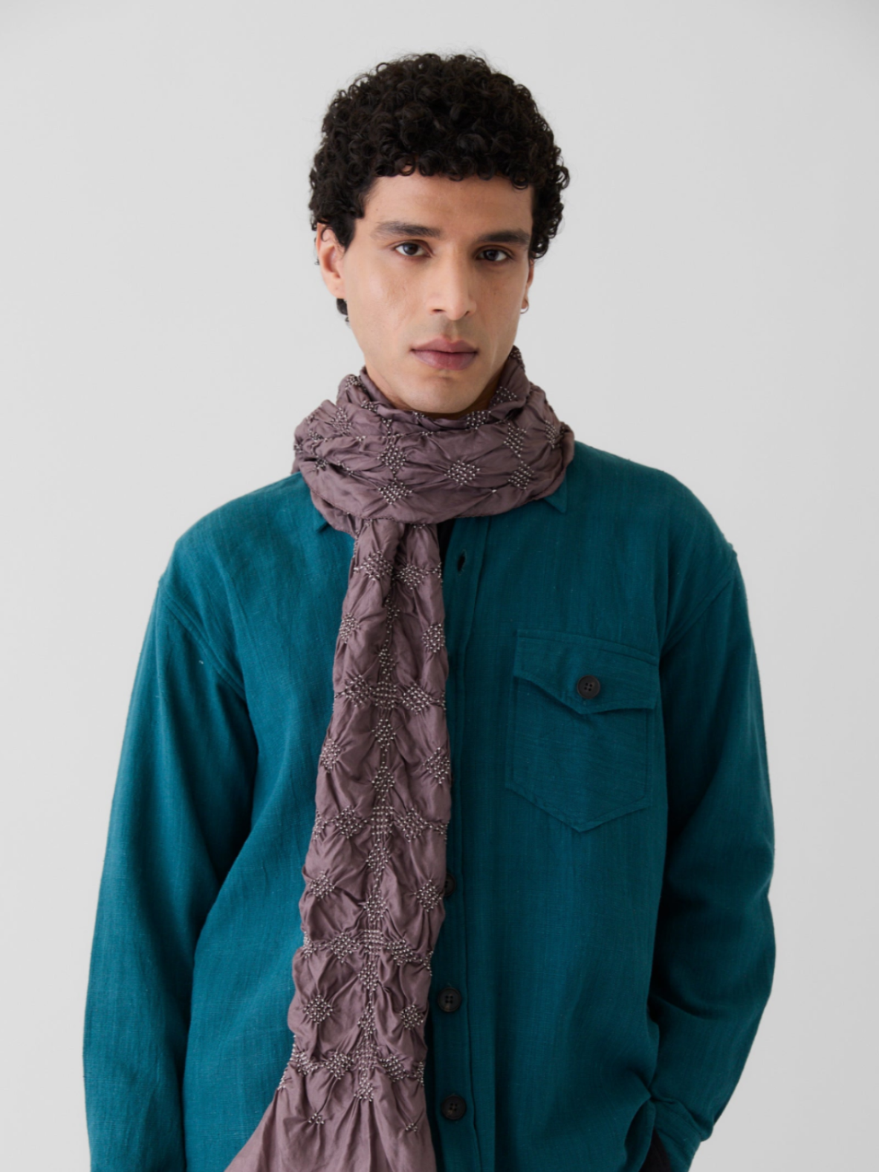 Handwoven with Kala Cotton, a resilient and organic fabric from Kutch, India, this material is grown without pesticides and relies solely on rainwater. Dyed with azo-free dyes, it supports sustainable production practices and traditional livelihoods. It is gentle on the skin and fully biodegradable.